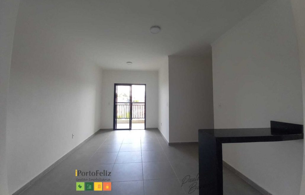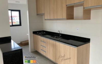São 2 quartos, sendo 1 suíte, banheiro social, sala com sacada, cozinha com armário planejado e cooktop e 1 vaga de garagem.