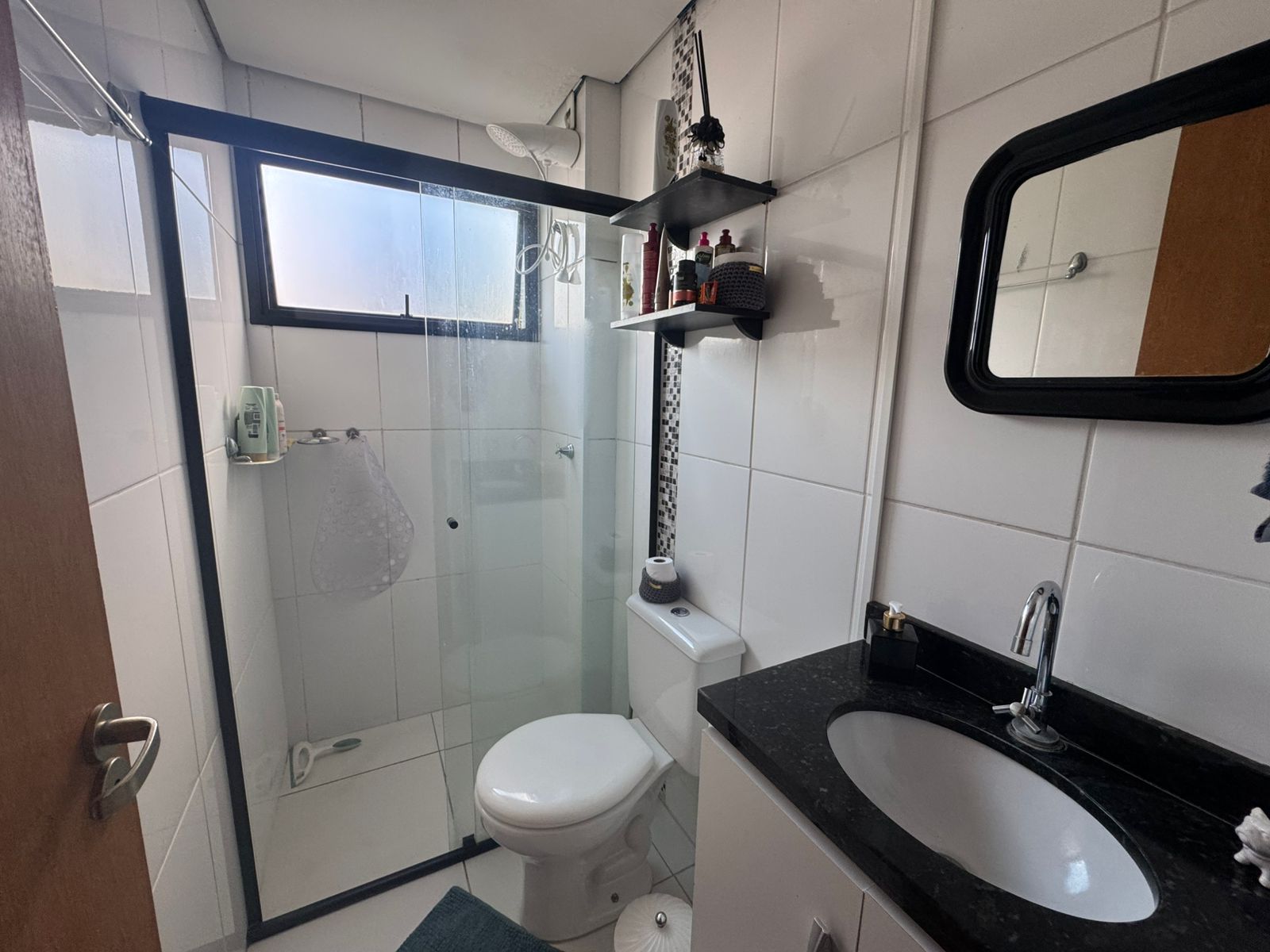 São 3 quartos, sendo 1 suíte com sacada, sala ampla para 2 ambientes, varanda, cozinha ampla, lavanderia, banheiro social e garagem para 2 carros.