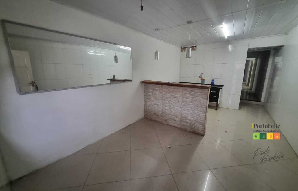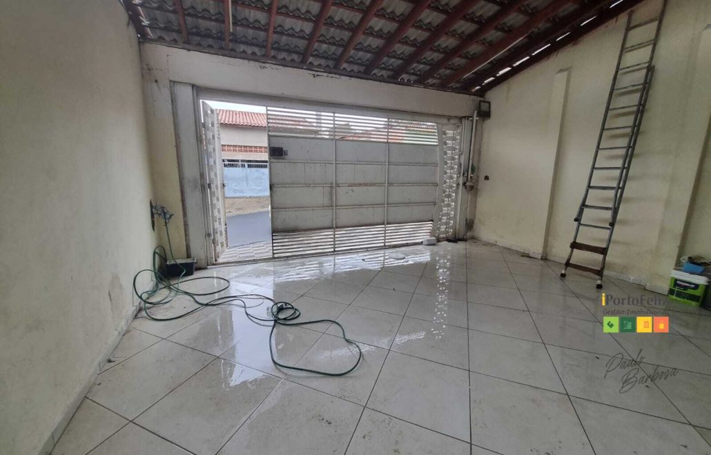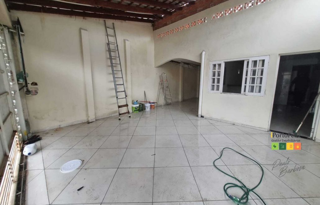 A casa conta com sala e cozinha integradas, 3 quartos, banheiro social e garagem para 2 carros.