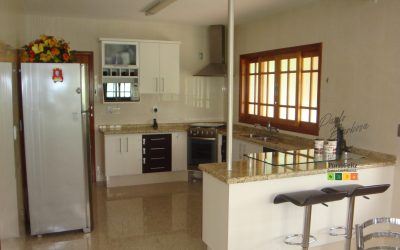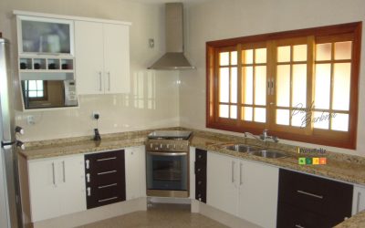 São 3 quartos, sendo 2 suítes, uma com closet. Banheiro social, sala ampla para 2 ambientes, cozinha americana com armários, sala de jantar, lavanderia e lavabo.