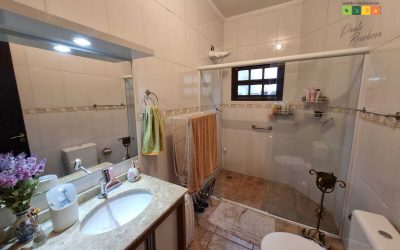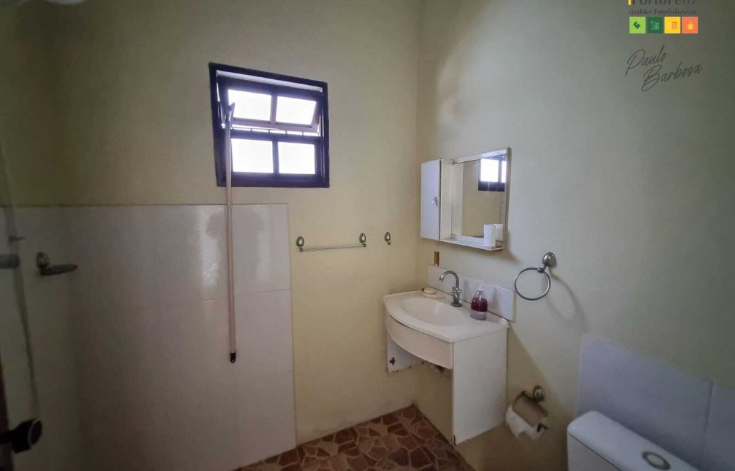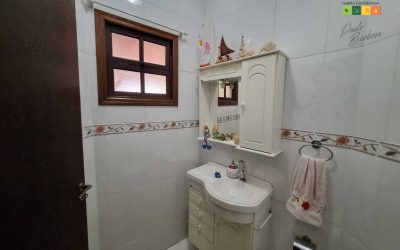 Banheiro social bem equipado e lavabo de apoio próximo à sala, atendendo com praticidade toda a casa.