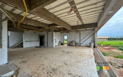 A casa se encontra em fase final de obras, com previsão de conclusão para fevereiro de 2025 e será entregue conforme projeto.