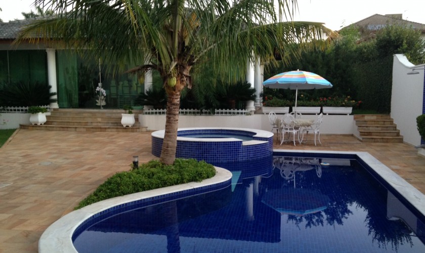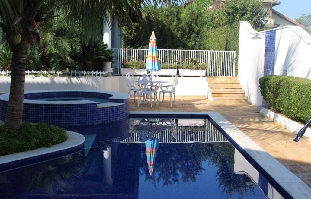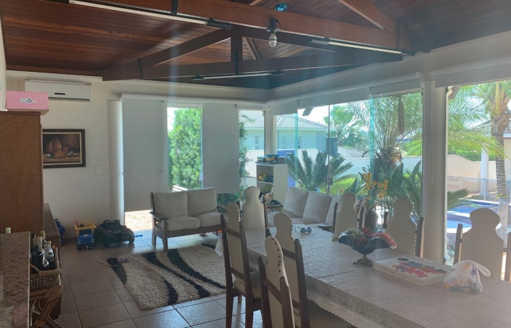Casa no condomínio Portal dos Bandeirantes I, sendo 4 suítes, sala de tv, sala ampla, escritório, sótão, espaço gourmet com blindex e ar condicionado em todos os cômodos e piscina.