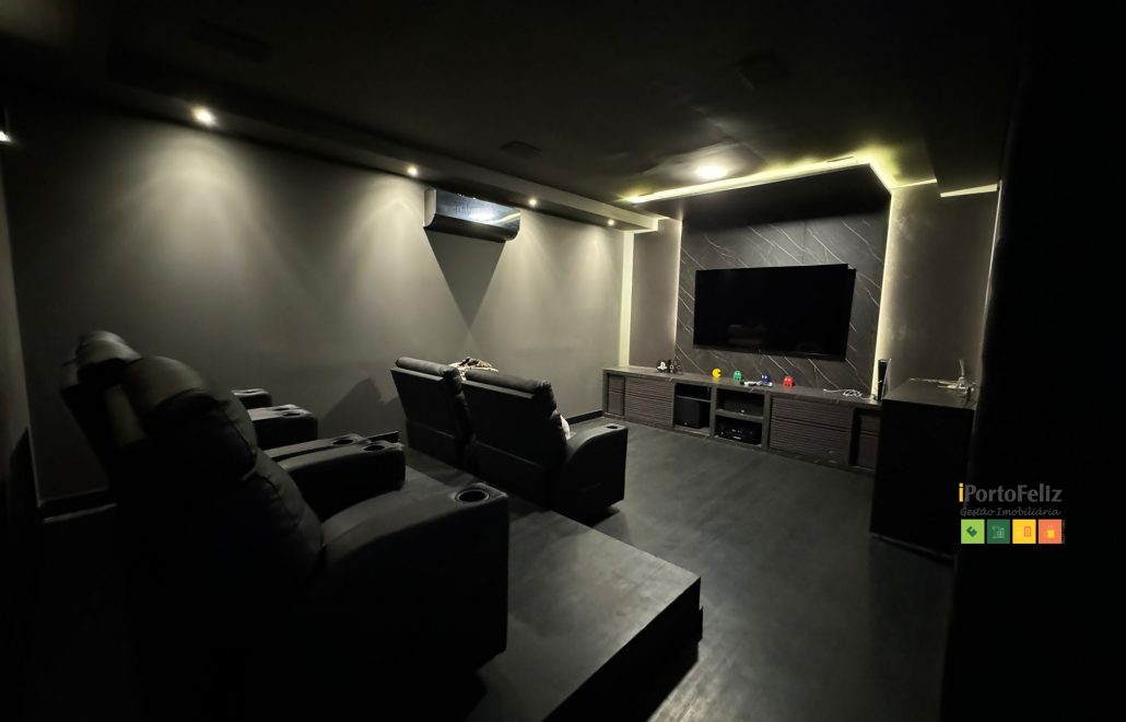 E para os amantes do cinema, um espaço dedicado equipado com tecnologia de ponta proporciona uma experiência cinematográfica incomparável, ideal para noites de filmes em família.