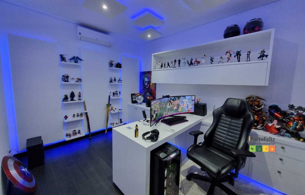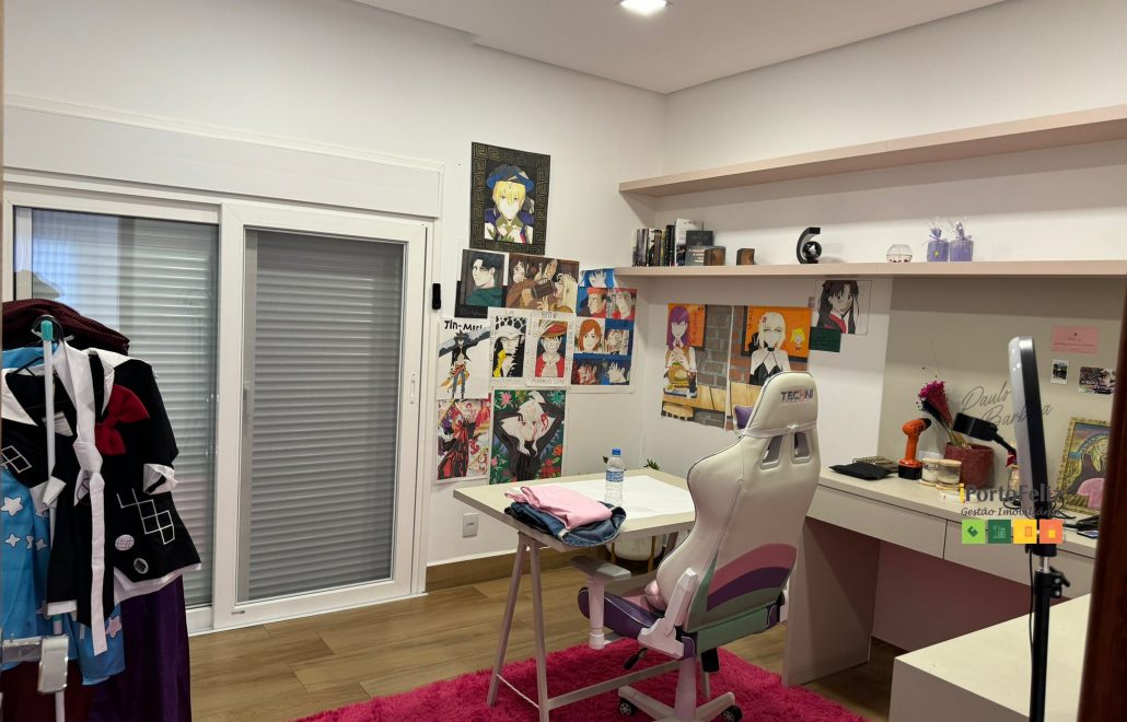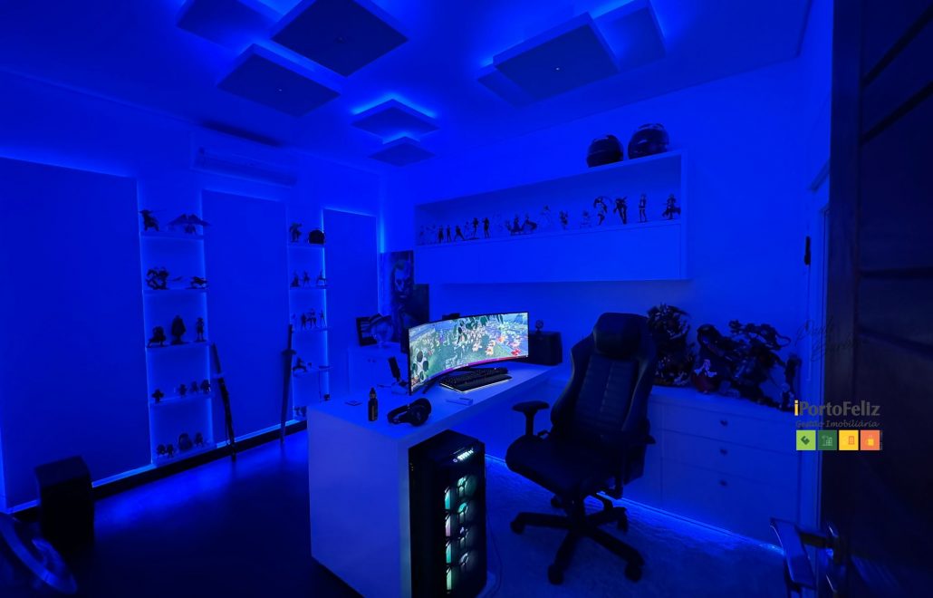 Esta residência oferece não apenas conforto, mas também privacidade, com quatro suítes espaçosas. A suíte máster é um verdadeiro refúgio, com um generoso closet e um banheiro luxuoso. Além disso, um escritório privativo oferece o ambiente perfeito para trabalhar em casa com tranquilidade ou ter momento relaxante jogando em um espaço que trás a imersão do mundo gamer.