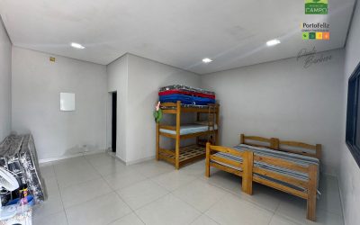 Amplo salão integrado à cozinha, ideal para eventos e confraternizações