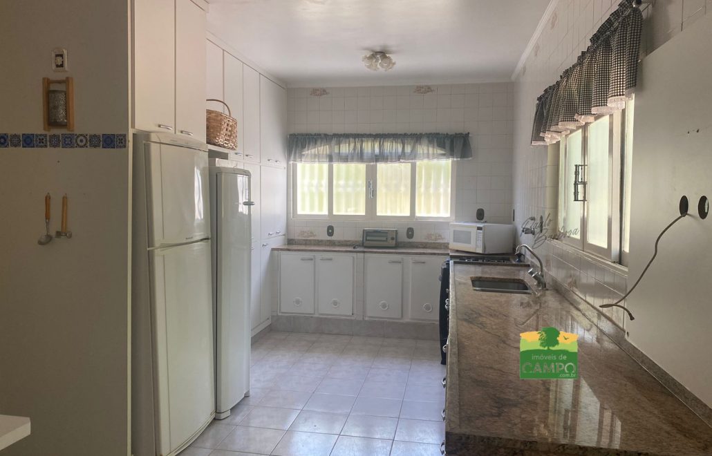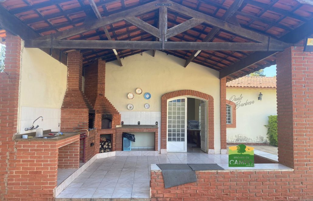 Espaço gourmet com churrasqueira e fogão à lenha.