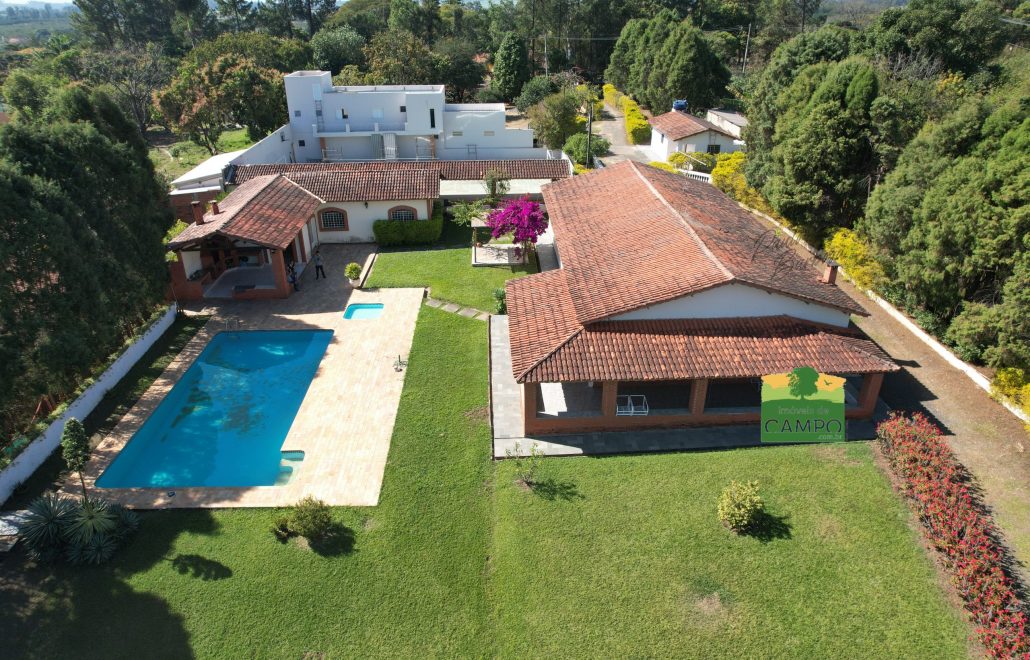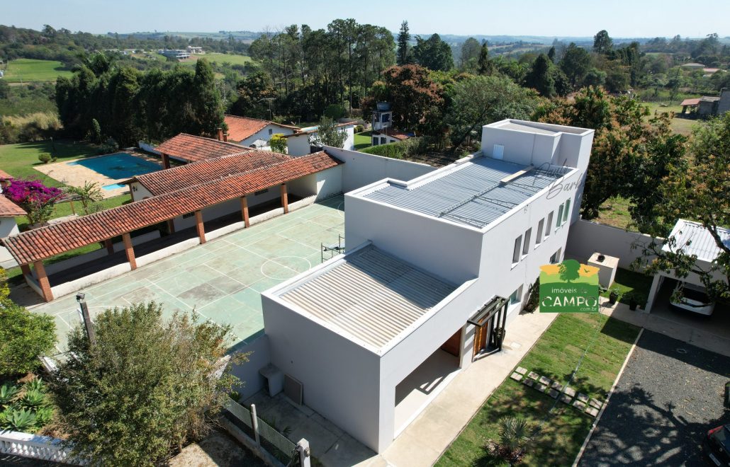 A propriedade possui 2 casas, quadra poliesportiva, quadra de bocha, salão de jogos, espaço gourmet, piscinas infantil e adulta, casa de caseiro, pergolado, paisagismo, estacionamento, e ainda possui um terreno de 2.500m² com outra pequena casa de caseiro.