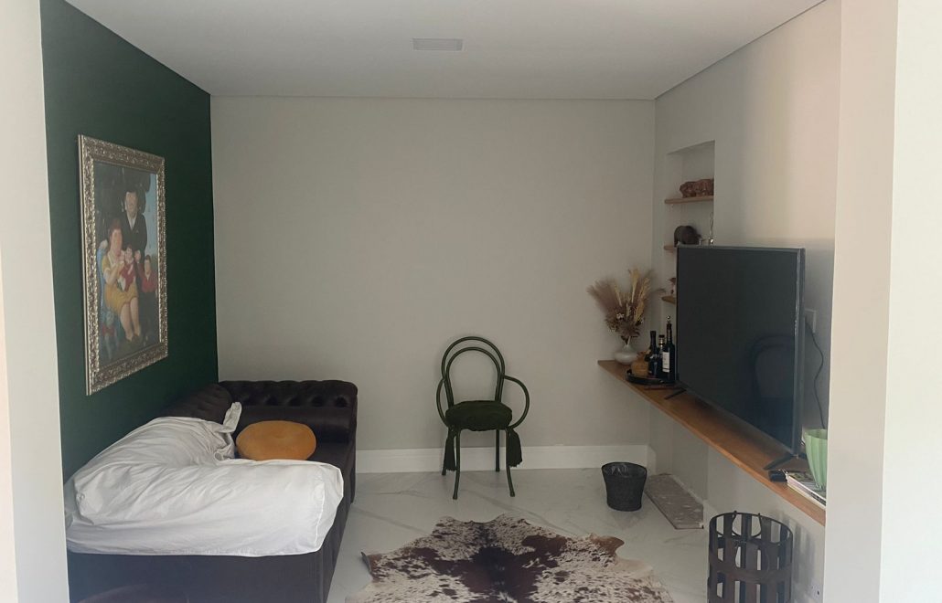 Casa 1: São 2 suítes, sala de TV, lavabo, cozinha, sala de jantar, lavanderia, e área gourmet. Garagem coberta para 2 carros e ainda possui um escritório com banheiro ao lado.