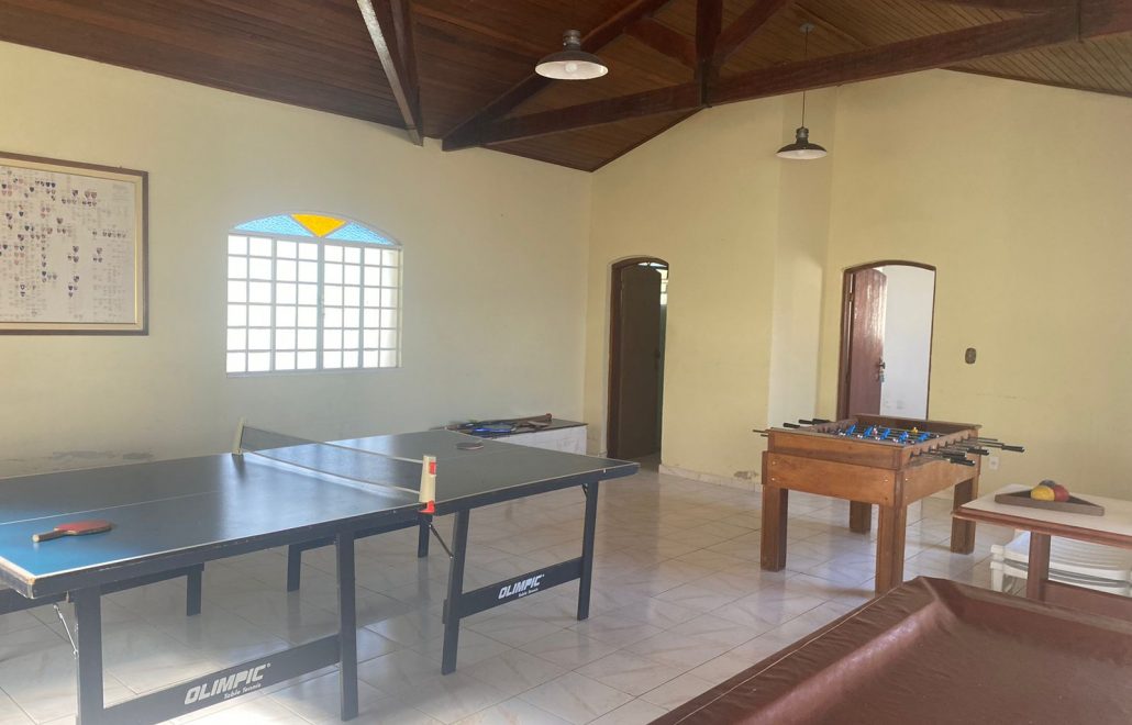 Lazer: Piscina infantil e adulta, espaço gourmet com churrasqueira e fogão à lenha, salão de jogos com mesa de sinuca, ping-pong e pebolim, com quarto e banheiro, quadra poliesportiva e quadra de bocha.