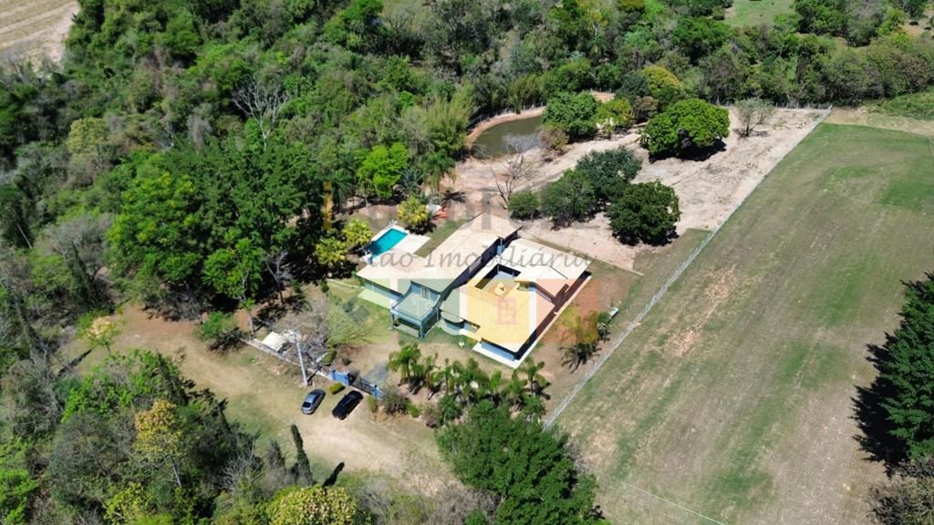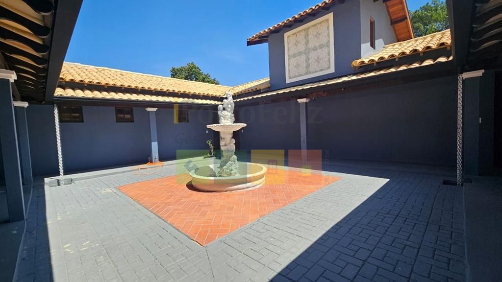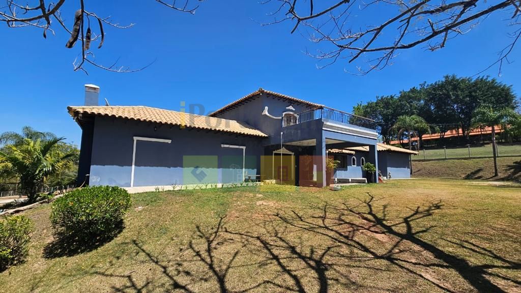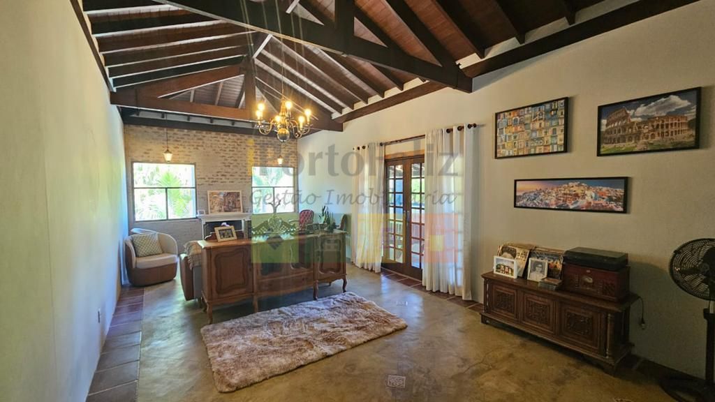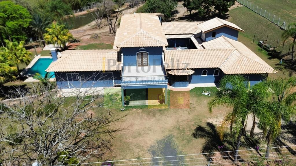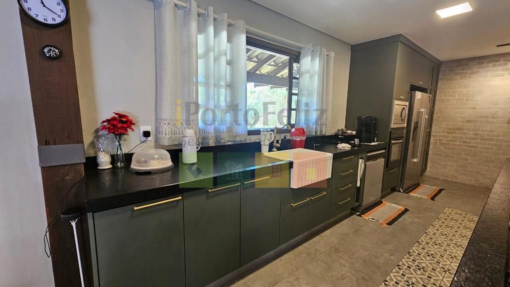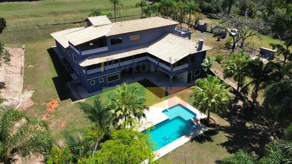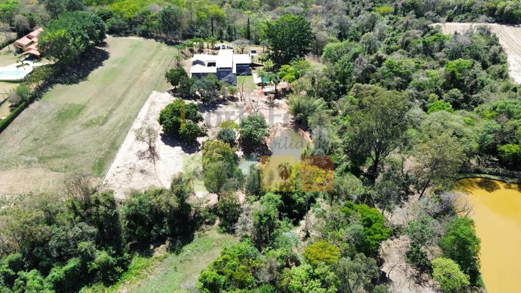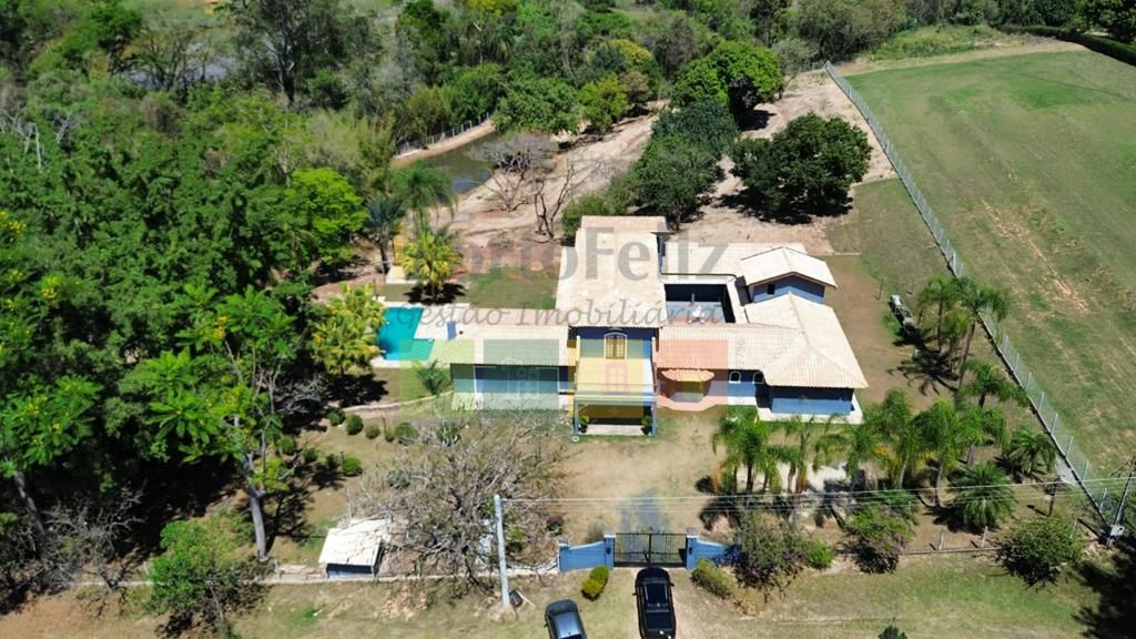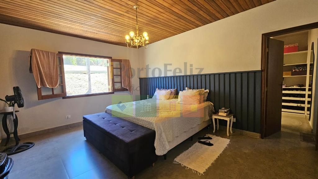 Chácara à venda em Condomínio Fechado em Porto Feliz, com 6.000 m² de terreno e 840 m² de área construída, 6 suítes, 11 banheiros, sala estar, sala de jantar, cozinha planejada, lavanderia, escritório, despensa, pátio interno com fonte, salão de jogos, varanda inferior e superior, sacada na frente, sala de ginástica com banheiros e quarto. Casa de ferramentas (ou casa de caseiro)no piso inferior, piscina espaço gourmet com churrasqueira, fogão e forno a lenha. Área verde do lado direito e frente , com um riacho passando na divisa do terreno. Terreno todo cercado de alambrado