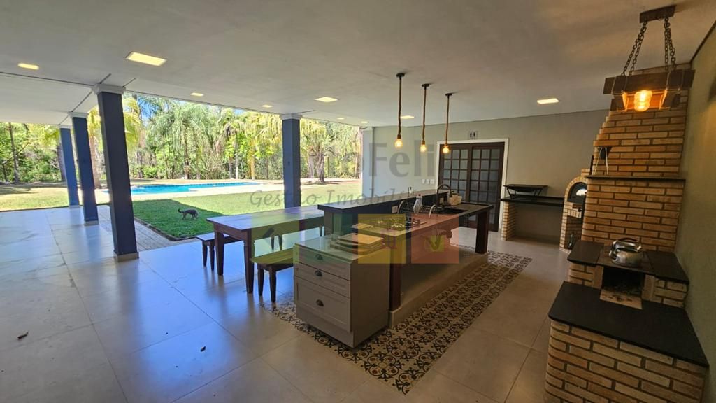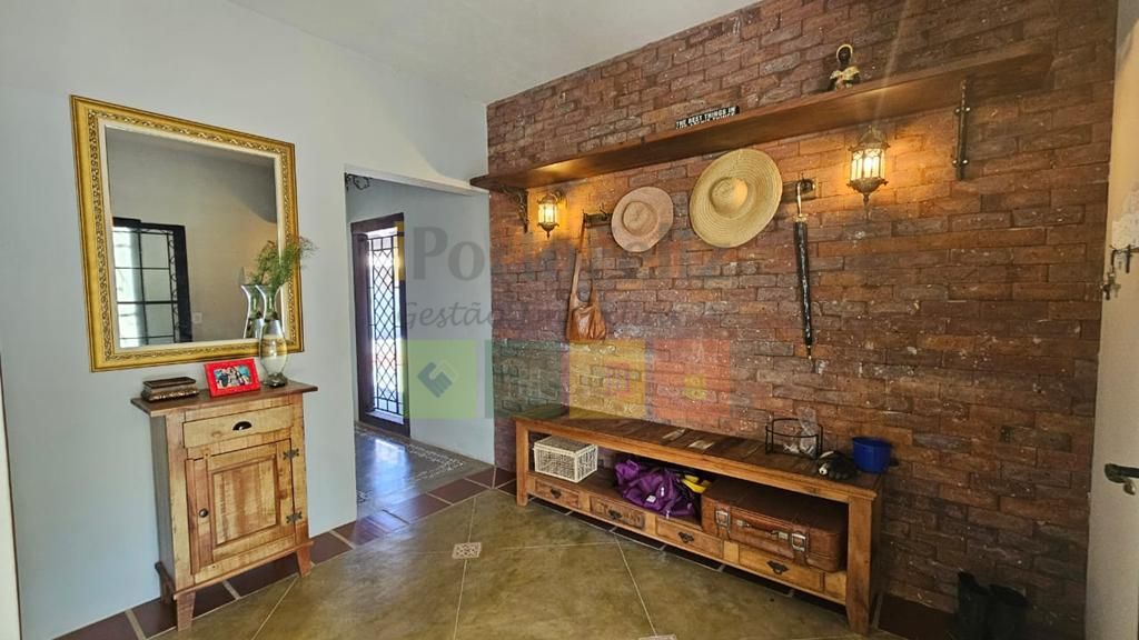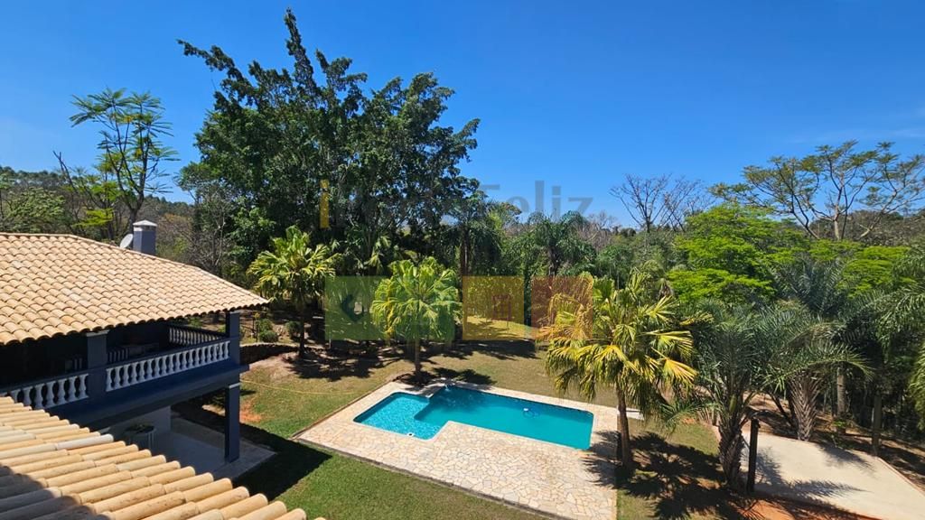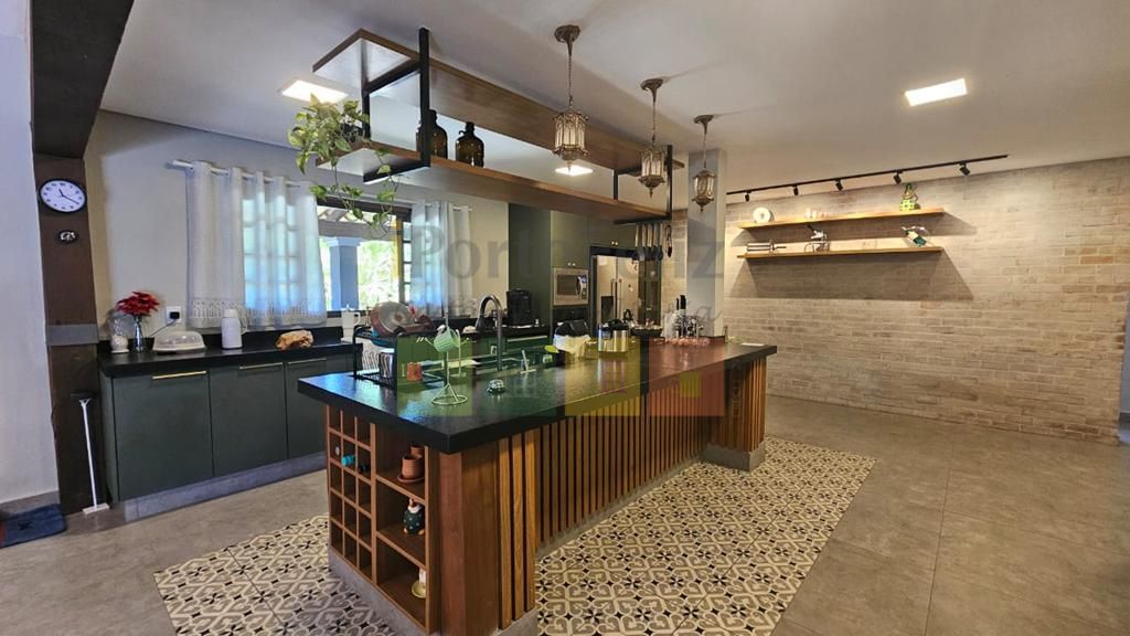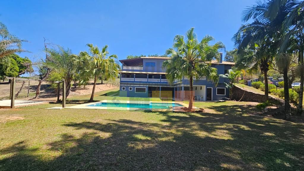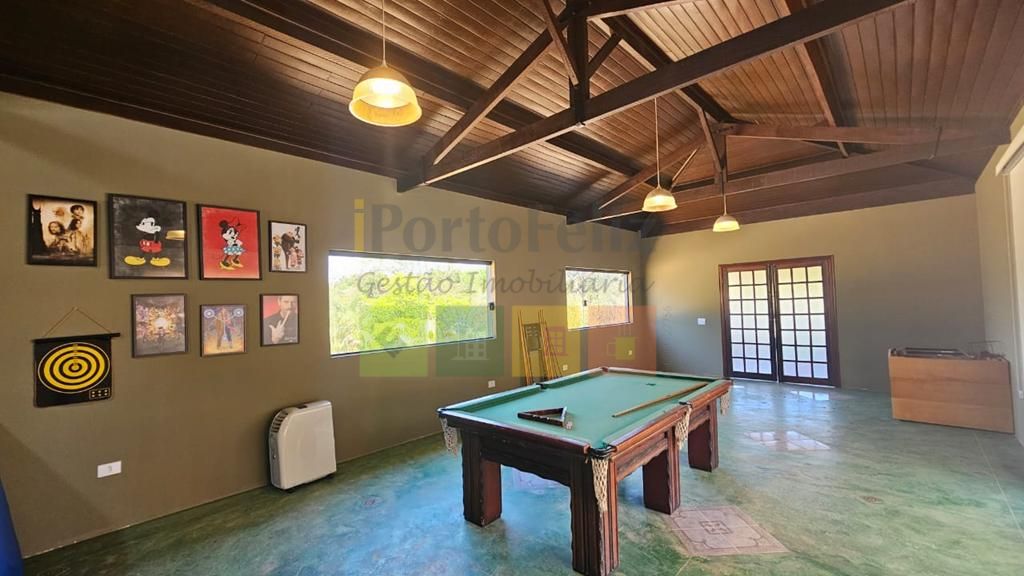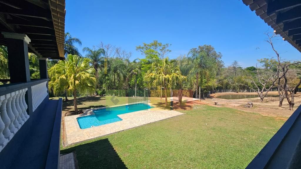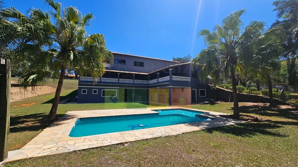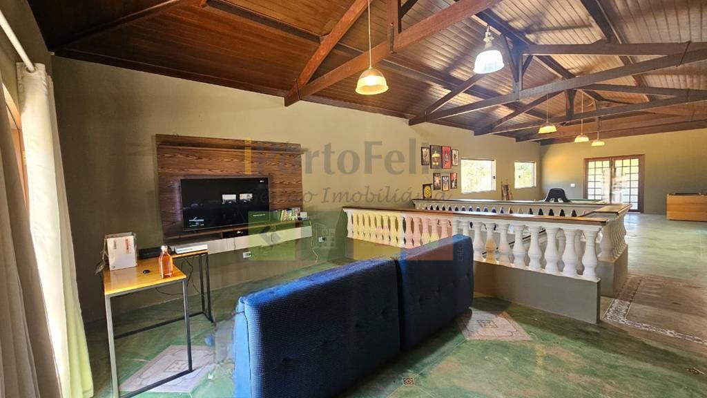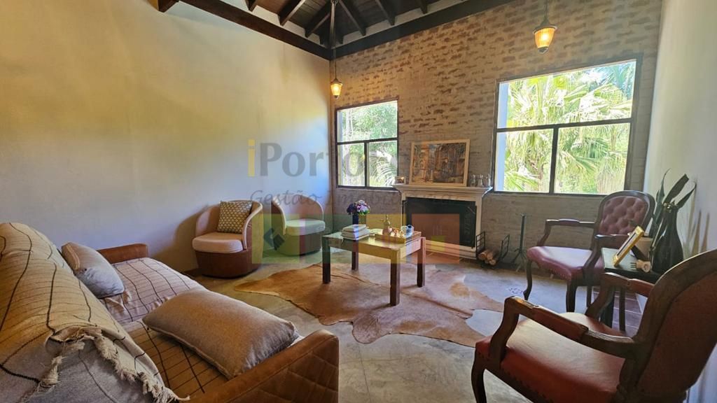 Chácara à venda em Condomínio Fechado em Porto Feliz, com 6.000 m² de terreno e 840 m² de área construída, 6 suítes, 11 banheiros, sala estar, sala de jantar, cozinha planejada, lavanderia, escritório, despensa, pátio interno com fonte, salão de jogos, varanda inferior e superior, sacada na frente, sala de ginástica com banheiros e quarto. Casa de ferramentas (ou casa de caseiro)no piso inferior, piscina espaço gourmet com churrasqueira, fogão e forno a lenha. Área verde do lado direito e frente , com um riacho passando na divisa do terreno. Terreno todo cercado de alambrado