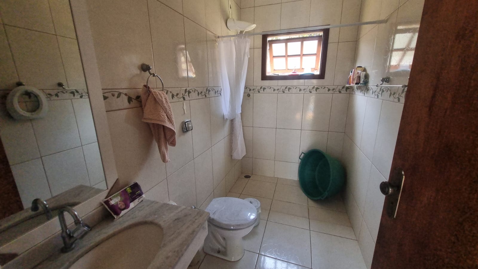 Banheiro externo, atendendo à piscina e ao espaço gourmet.