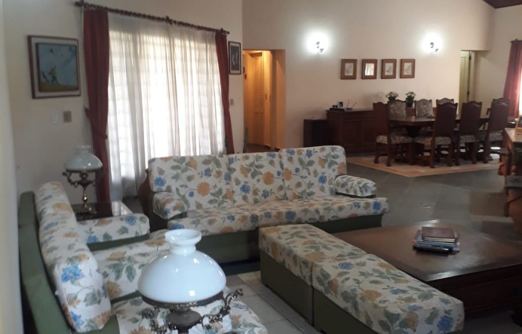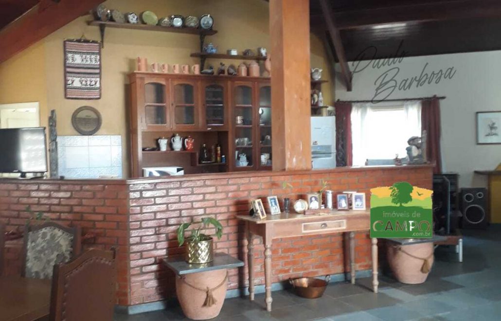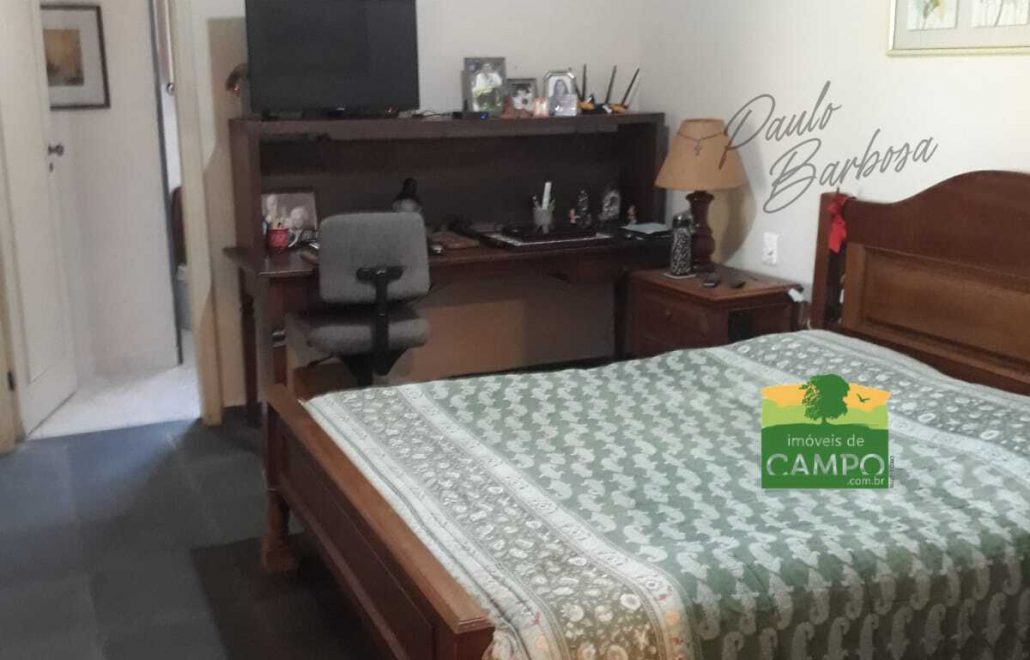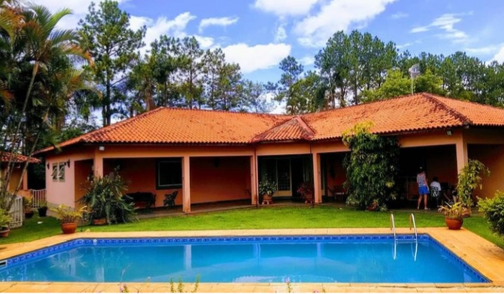 Chácara com pomar, horta, 1 canil grande, 2 canis médios, 2 canis pequenos, 2 depósitos, 1 banheiro de serviço, piscina de 60.000 litros, churrasqueira com cozinha anexa, banheiro completo para piscina, varanda em toda a fachada da casa, 4 suítes com closet, sala de jantar, sala de estar, cozinha conceito aberto, lavabo, lavanderia, dispensa, garagem coberta para 3 carros, quarto com banheiro anexo a garagem, passanderia e barracão montado para ferramentas. Condomínio fechado com portaria eletrônica e câmeras em todo condomínio.