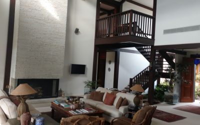Sala com vários ambientes e pé-direito duplo