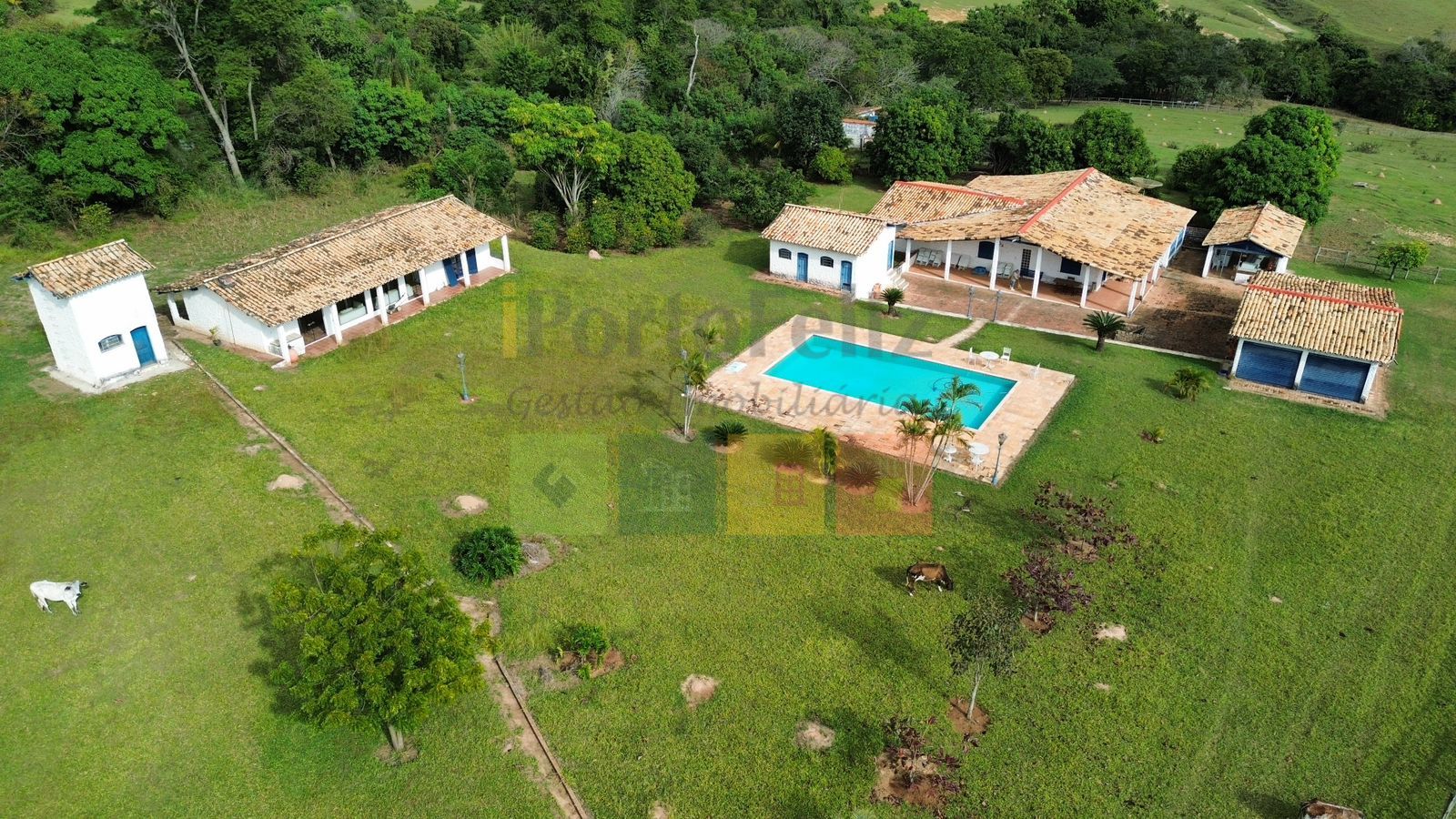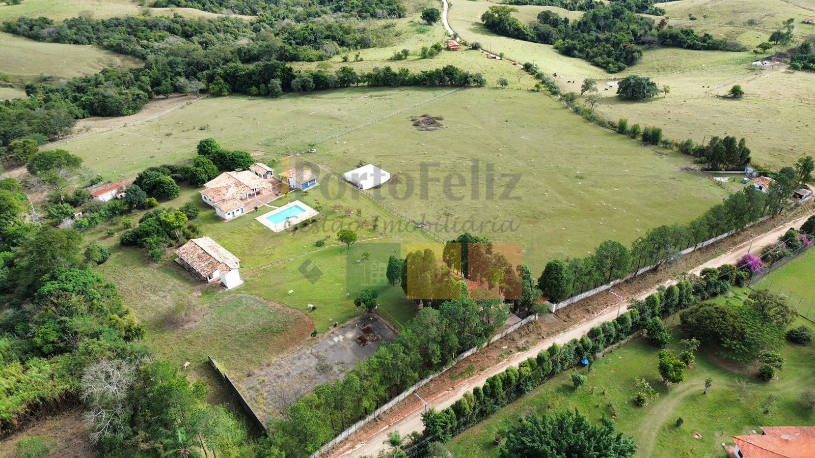Casa sede com 3 suítes + 3 suítes externas, casa de hóspedes com 2 quartos, sala, cozinha e banheiro. Salão de jogos, garagem, depósito de máquinas, piscina 7m x 14m com capacidade de 100 mil litros. Poço artesiano de 160 metros de profundidade, caixa d´água de 15 mil litros, galinheiro, mangueira para gado, pomar com inúmeras árvores frutíferas, pasto para gado, casa de caseiro e quadra de tênis que necessita de reforma.